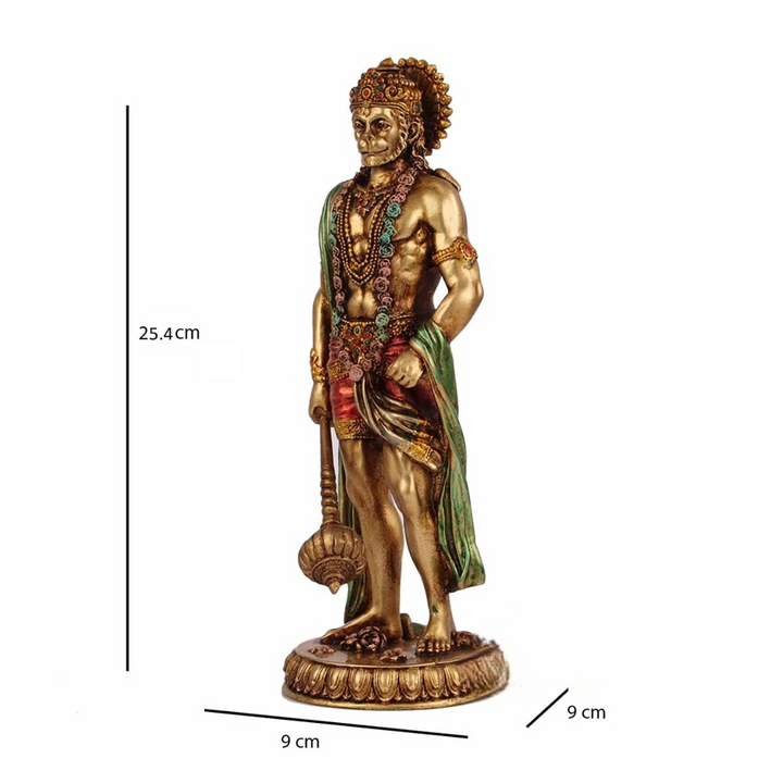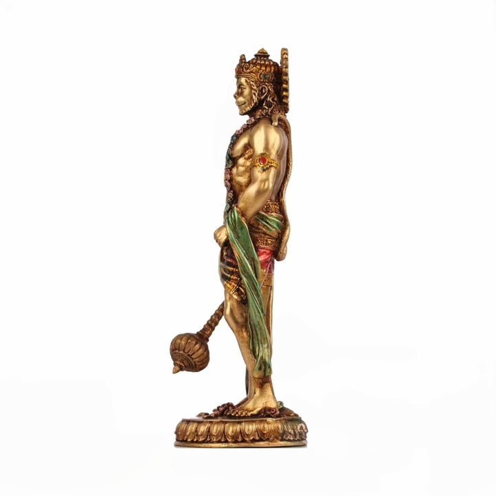 The figurine captures Hanuman standing with Gada, symbolizing valor, loyalty, and unwavering devotion.