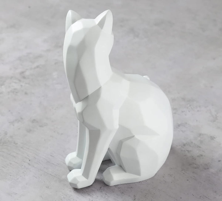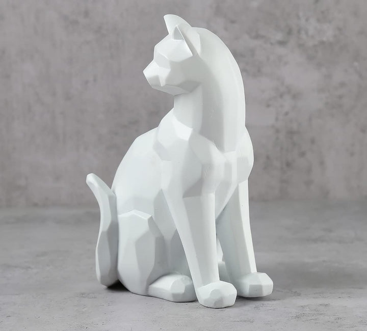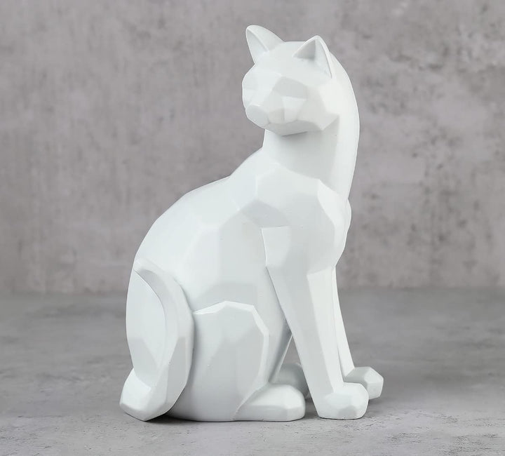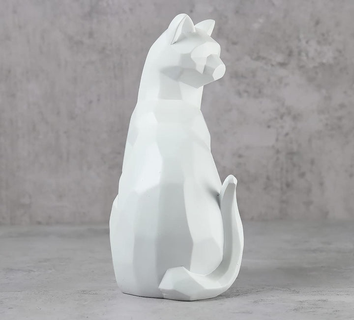 Resin White Cat Figurine | Elegant Animal Showpiece for Home & Office Decor | Luxury Gifting Sculpture
