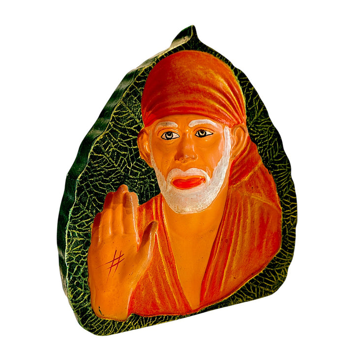 Short Description : Invite divine blessings, peace, and spiritual harmony into your home with this beautifully crafted Resin Sai Baba on Leaf Idol. The idol features Sai Baba in a blessing posture, set against a textured green leaf backdrop that enhances its aesthetic and spiritual appeal. Perfect for pooja rooms, living rooms, offices, meditation spaces, and gifting occasions, this idol serves as a symbol of faith, devotion, and positivity