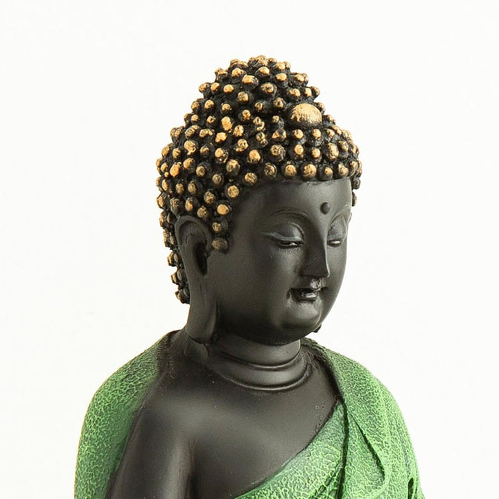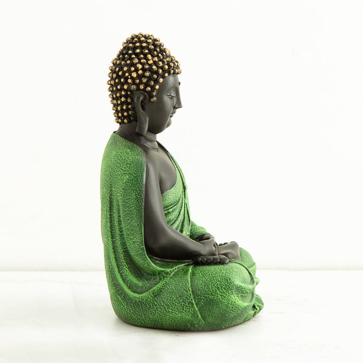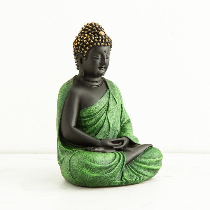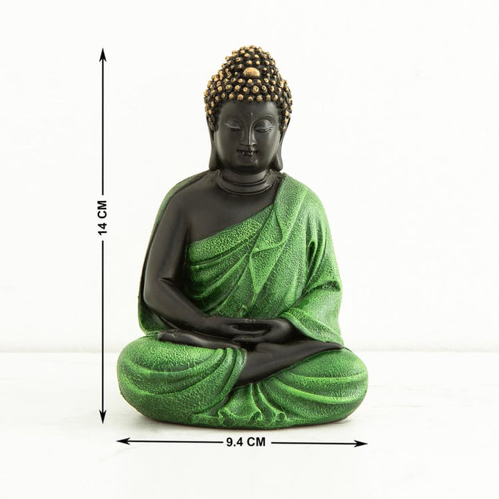 Serene Black & Green Meditating Buddha Statue | Peaceful Zen Harmony Idol | Modern Spiritual Home Decor, Unique Mindfulness Gift & Yoga Studio Accent