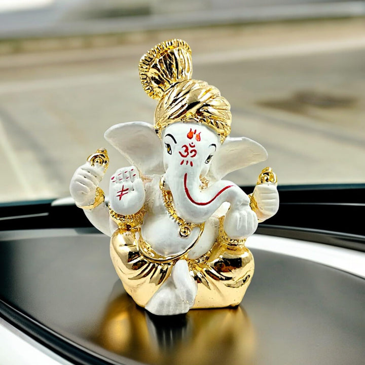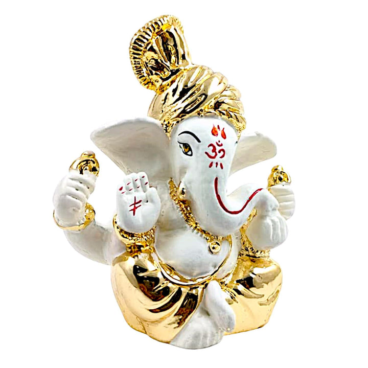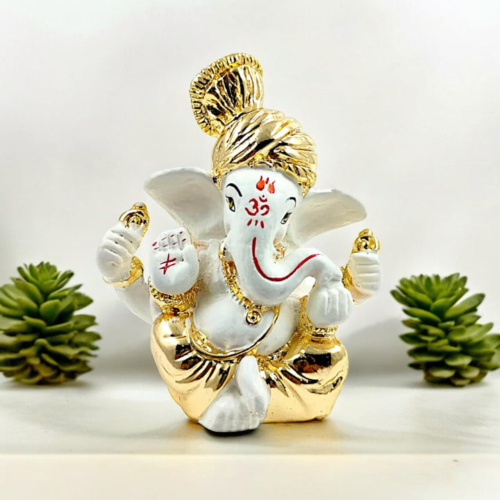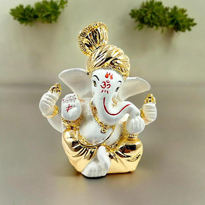 Serene Cream Ganesha Idol | Polyresin Pure Statue with Modak for Wisdom, Prosperity & Elegant Home Decor