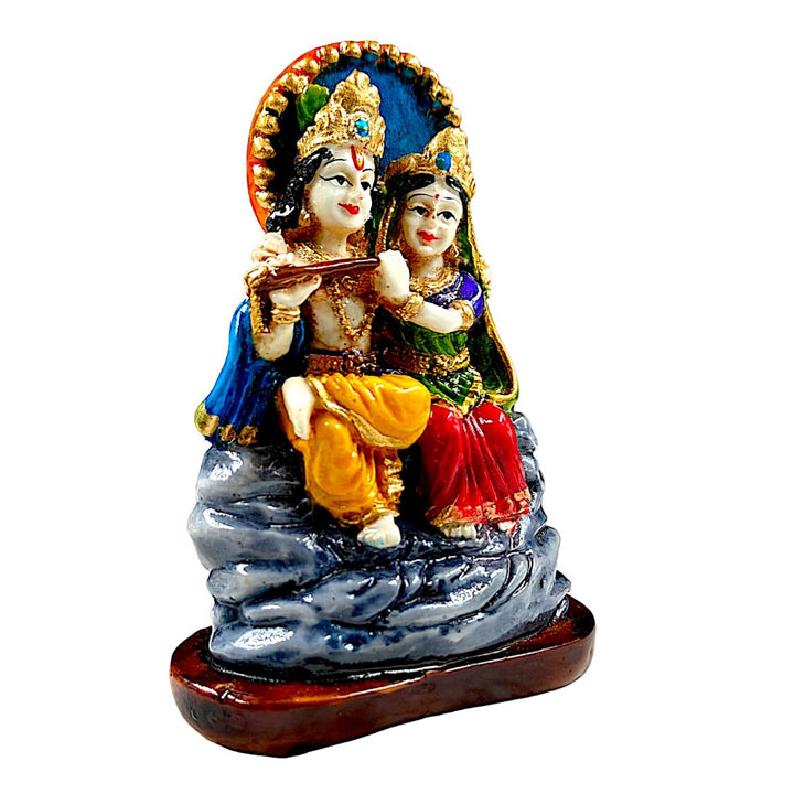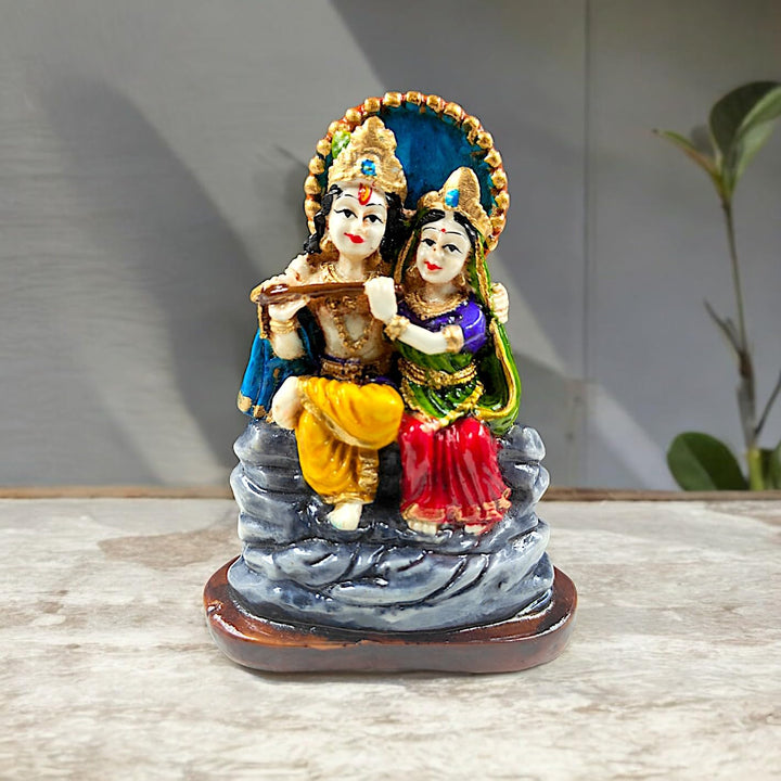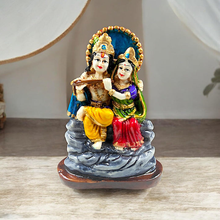 Serene Radha Krishna Seated Statue | Vibrant Resin Idol for Divine Love, Home Harmony & Spiritual Gifting