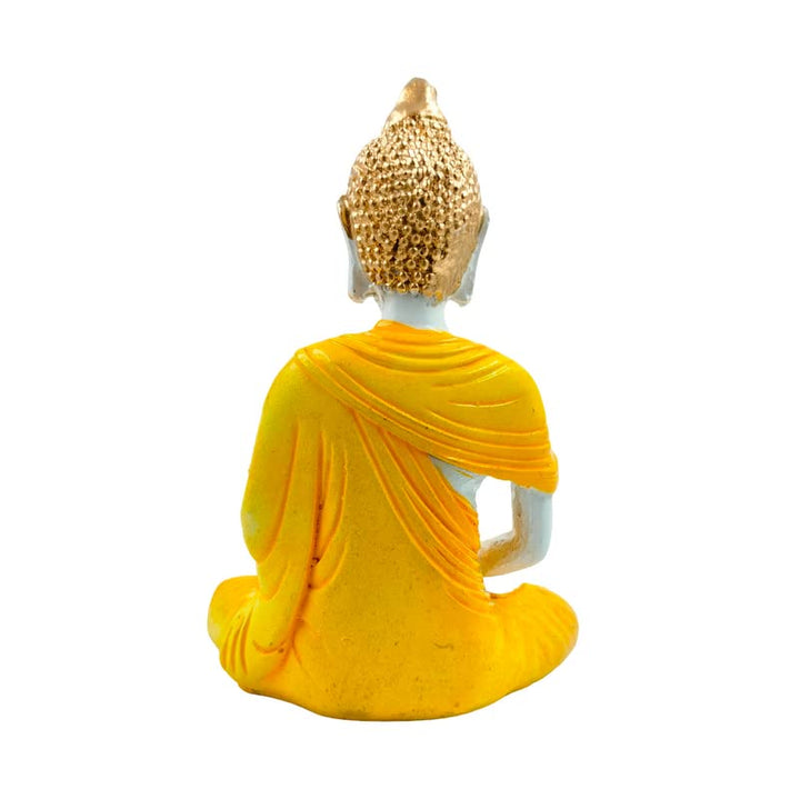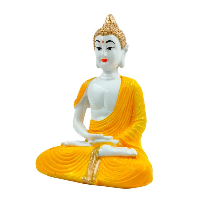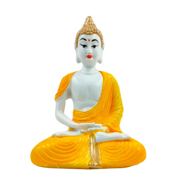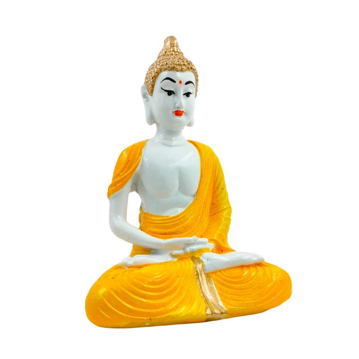 Serene White & Yellow Meditating Buddha Idol | Polyresin Zen Statue for Inner Peace, Enlightenment & Tranquil Home Decor