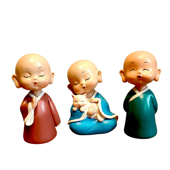 Short Description : Bring charm, joy, and spiritual positivity to your space with this Set of Three Baby Monk Figurines, crafted from high-quality resin. These playful and serene monks are designed to inspire happiness, mindfulness, and calm energy wherever they are displayed. Perfect for home décor, meditation areas, or gifting to loved ones.