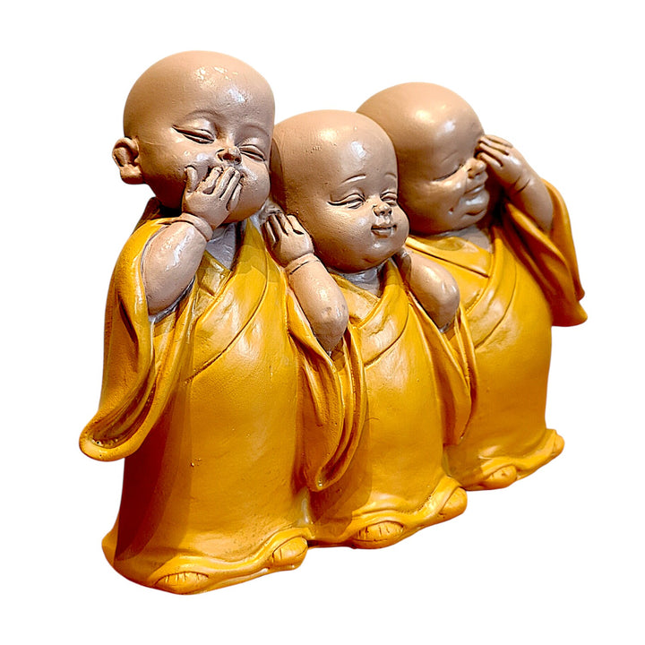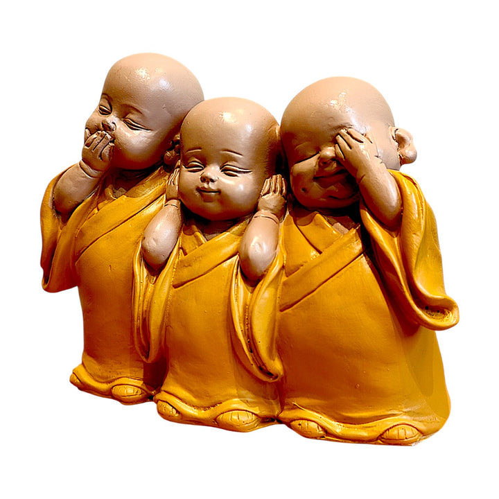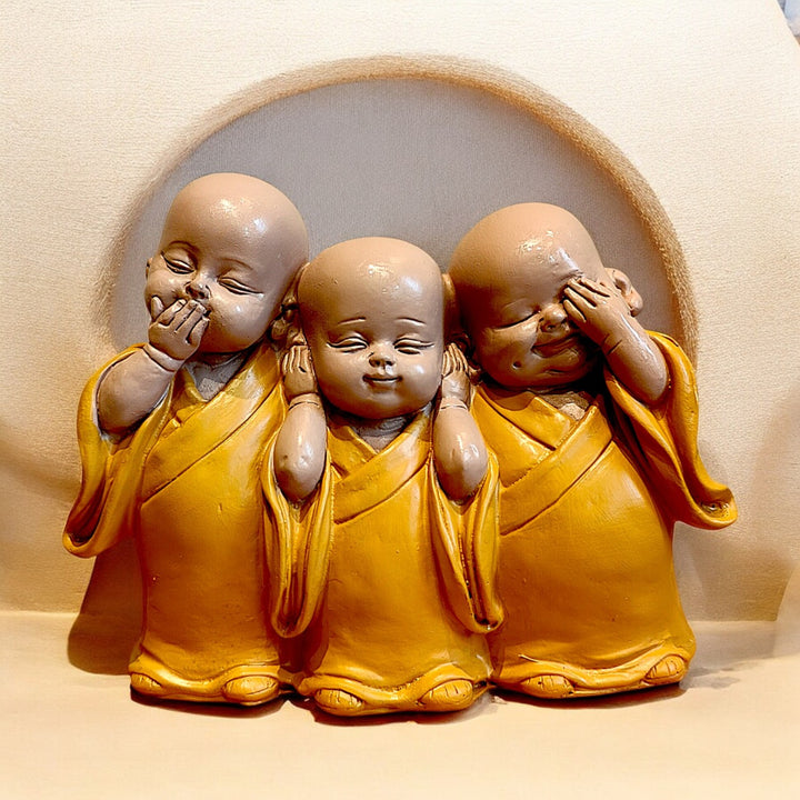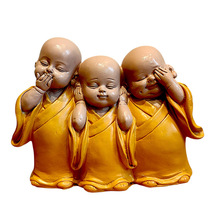 Set of 3 No Evil Buddha Figurines – Resin Statues | Spiritual Home Décor & Meditation Gift | Tabletop, Shelf & Living Room Accent