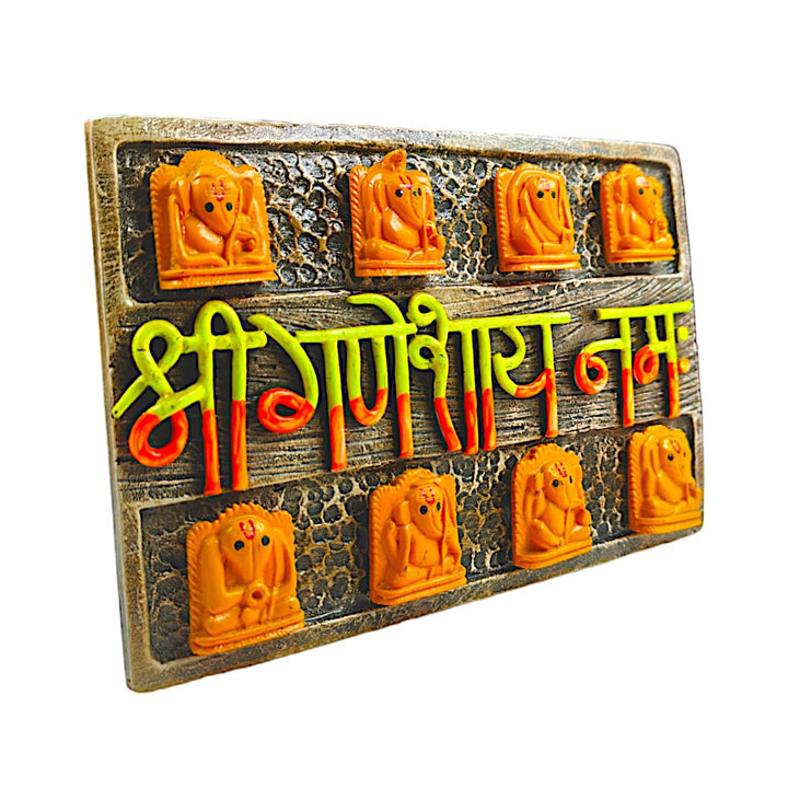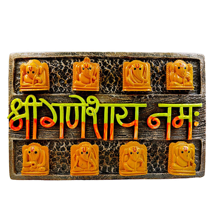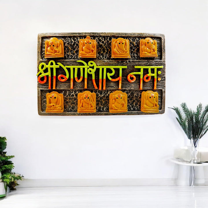 Short Description : Invite divine blessings and remove obstacles with our beautiful Resin Shri Ganeshay Namah Wall Hanging. Featuring 8 unique Ganesha idols and the powerful mantra, this auspicious piece is perfect for enhancing positive energy in your home, office, or puja room. A thoughtful gift for prosperity and good fortune.