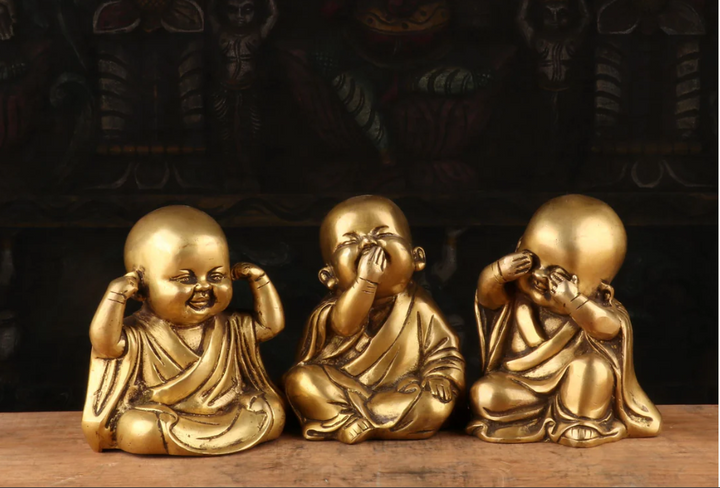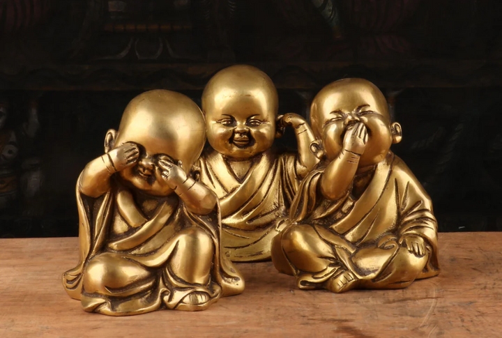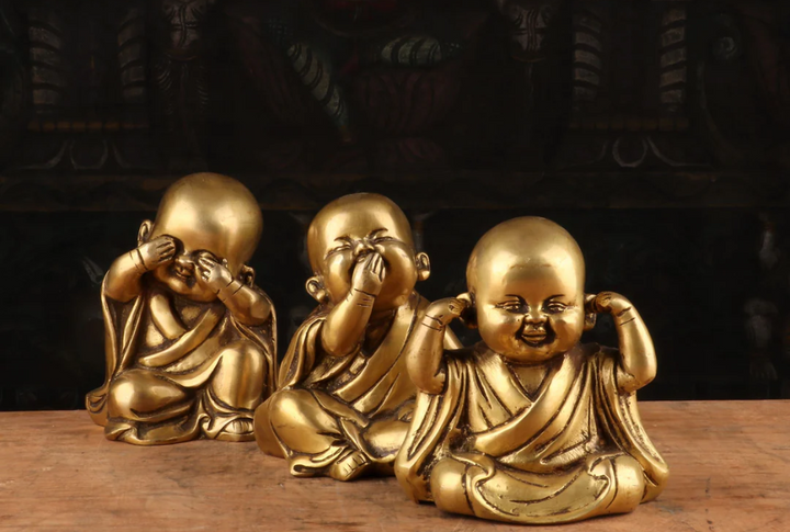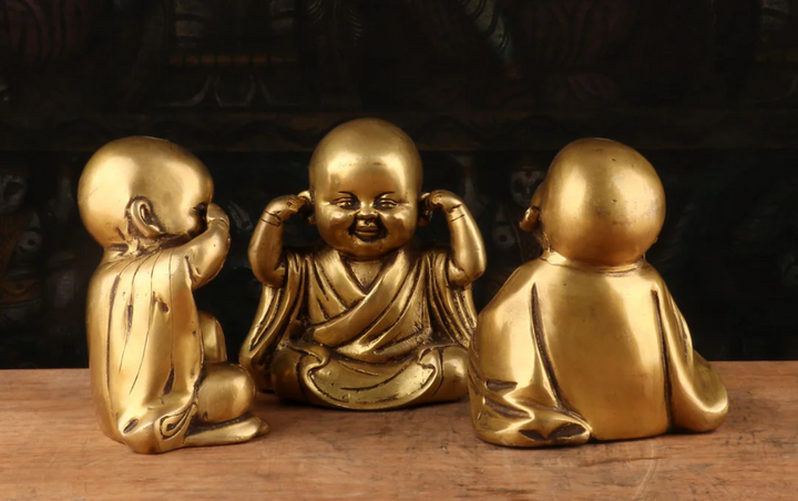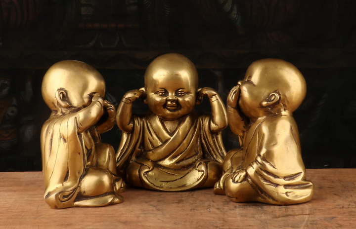 Short Description : Bring peace, positivity, and mindfulness to your space with this stunning Three Wise Buddha Monk Idol Set Each idol beautifully captures the essence of the ancient proverb — Hear No Evil, See No Evil, Speak No Evil — reminding us to live with kindness, awareness, and peace. Made from premium-quality resin and finished in a rich golden tone, these statues add a divine aura to any setting