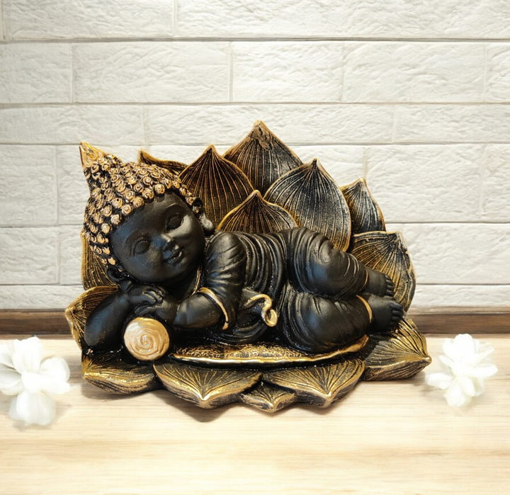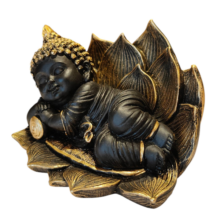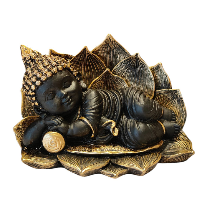 Tranquil Baby Buddha Sleeping Figurine | Polyresin Resting Buddha Statue on Lotus for Zen Home Decor, Peace & Meditation Gift