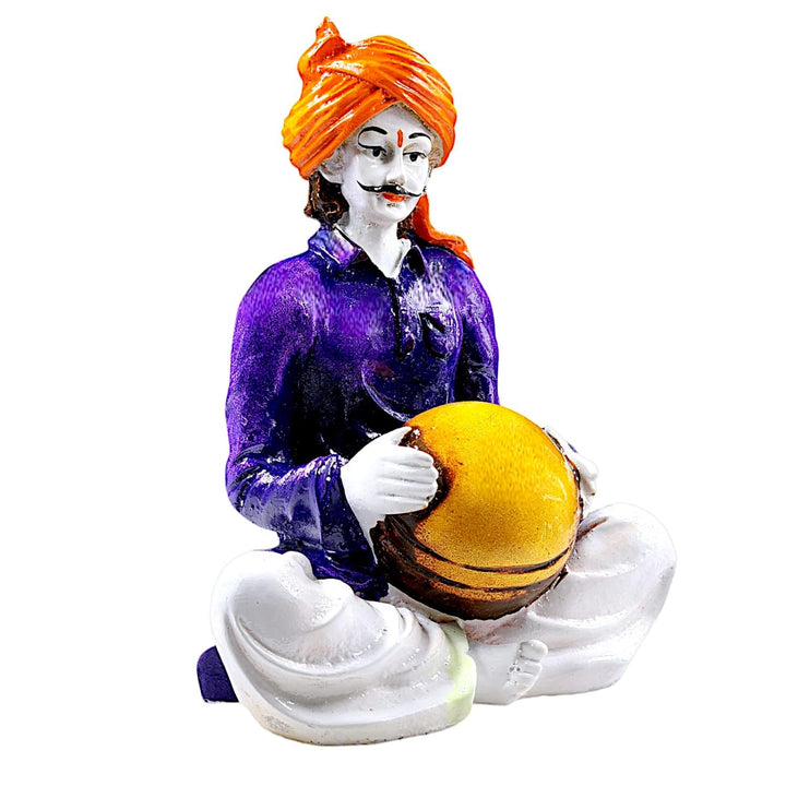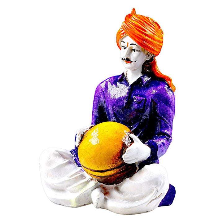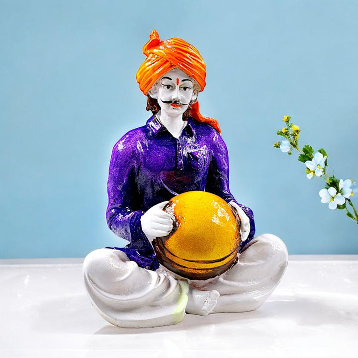 Vibrant Rajasthani Musician Figurine Playing Matka | Traditional Indian Folk Art Statue for Home Decor & Cultural Gifting