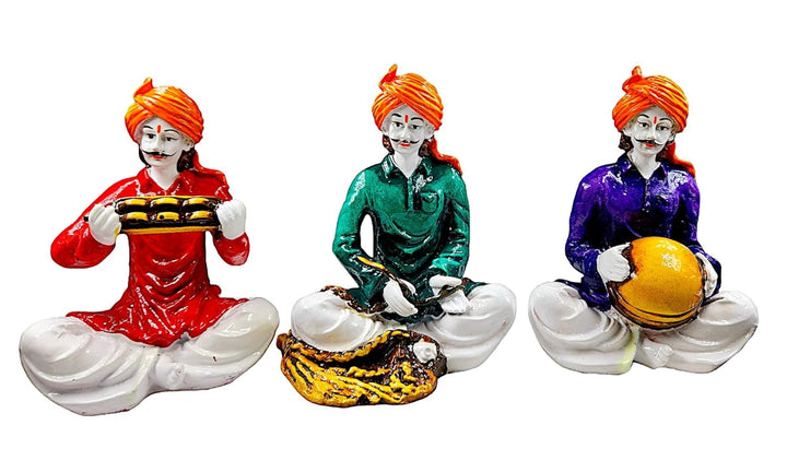 Vibrant Rajasthani Musician Figurine Set of | Traditional Indian Folk Art for Home Decor & Cultural Gifting | Resin Statues