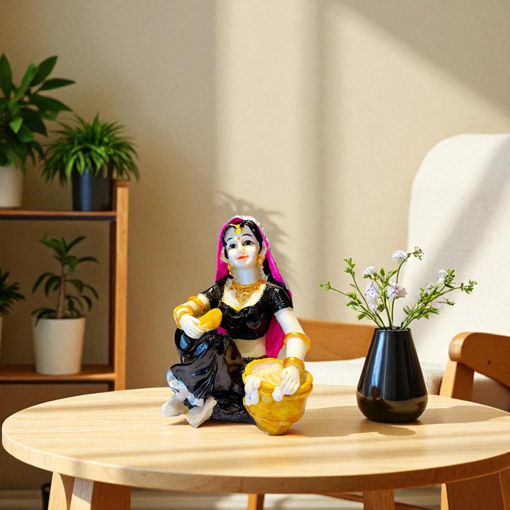 Vibrant Rajasthani Woman Figurine | Polyresin Traditional Indian Lady Statue for Ethnic Home Decor, Cultural Gifting & Accent Piece