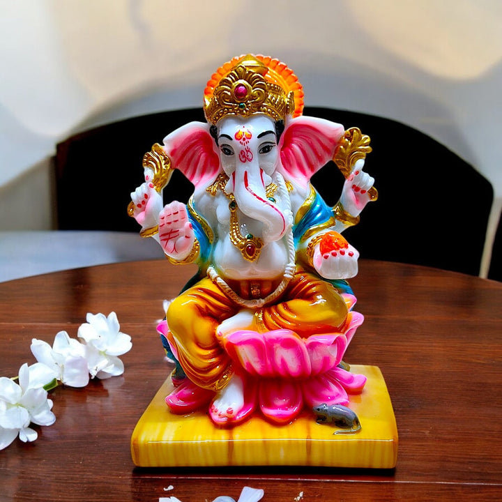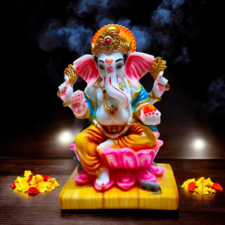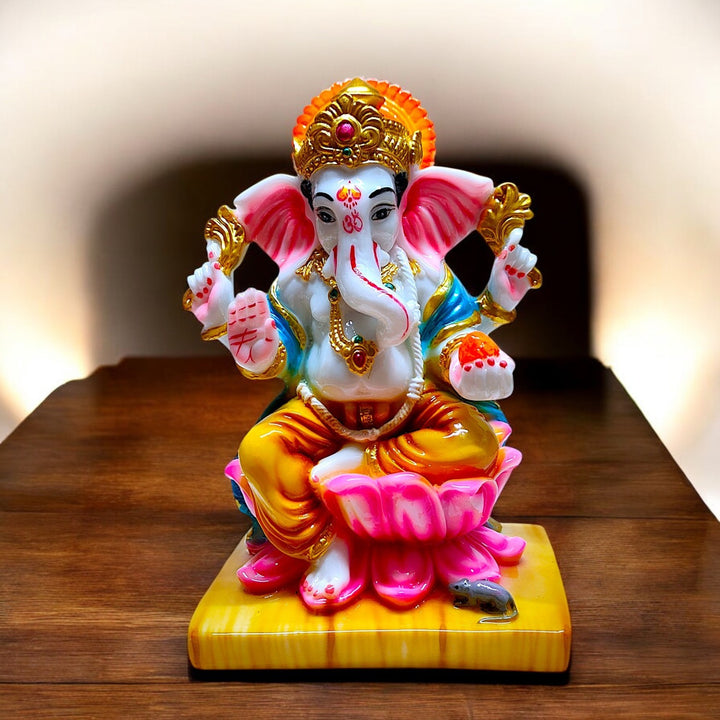 Vibrant Resin Ganesha Idol | Hand-Painted Lord Ganesha Statue for Home Decor and Pooja | Perfect Gift for Prosperity and Success