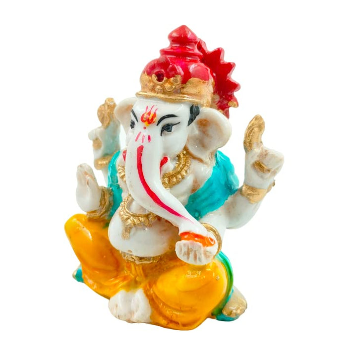 Vibrant Traditional Ganesha Idol | Polyresin Statue with Modak & Mouse for Prosperity, Wisdom & Auspicious Home Decor